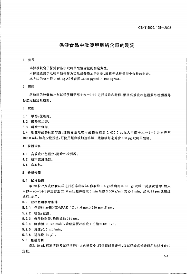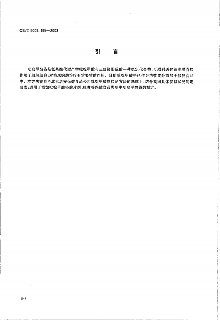 GB_T5009.195-2003保健食品中吡啶甲酸铬含量的标准测定强制性标准规范348072@abc1个月前发布关注私信93.52KB5页046GB_T5009.195-2003保健食品中吡啶甲酸铬含量的标准测定强制性标准规范此内容为付费资源,请付费后查看¥19¥26黄金会员免费钻石会员免费立即购买您当前未登录!建议登陆后购买,可保存购买订单付费资源 第1页 / 共5页 第2页 / 共5页 第3页 / 共5页 第4页 / 共5页 试读已结束,还剩1页,您可下载完整版后进行离线阅读 THE END农学类标准规范餐饮美食 喜欢就支持一下吧收藏