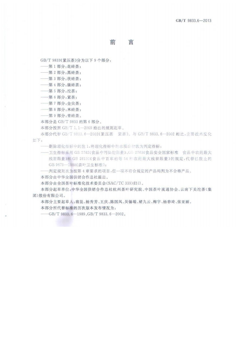中华人民共和国强制性标准规范GB_T9833.6-2013紧压茶第6部分:紧茶(新版现行)348072@abc1个月前发布关注私信0.69MB6页050中华人民共和国强制性标准规范GB_T9833.6-2013紧压茶第6部分:紧茶(新版现行)此内容为付费资源,请付费后查看¥23¥32黄金会员免费钻石会员免费立即购买您当前未登录!建议登陆后购买,可保存购买订单付费资源 第1页 / 共6页 第2页 / 共6页 第3页 / 共6页 第4页 / 共6页 试读已结束,还剩2页,您可下载完整版后进行离线阅读 THE END农学类标准规范餐饮美食 喜欢就支持一下吧收藏