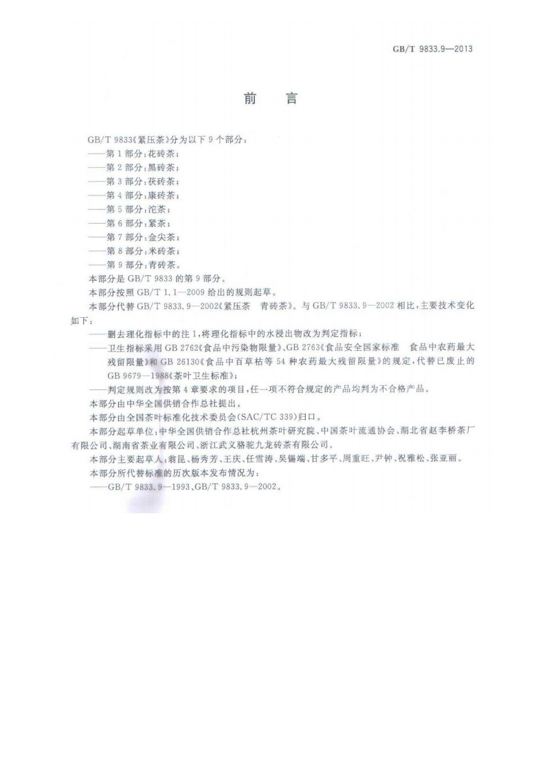 中华人民共和国强制性标准规范GB_T9833.9-2013紧压茶第9部分:青砖茶(新版现行)348072@abc1个月前发布关注私信0.73MB6页038中华人民共和国强制性标准规范GB_T9833.9-2013紧压茶第9部分:青砖茶(新版现行)此内容为付费资源,请付费后查看¥23¥32黄金会员免费钻石会员免费立即购买您当前未登录!建议登陆后购买,可保存购买订单付费资源 第1页 / 共6页 第2页 / 共6页 第3页 / 共6页 第4页 / 共6页 试读已结束,还剩2页,您可下载完整版后进行离线阅读 THE END农学类标准规范餐饮美食 喜欢就支持一下吧收藏