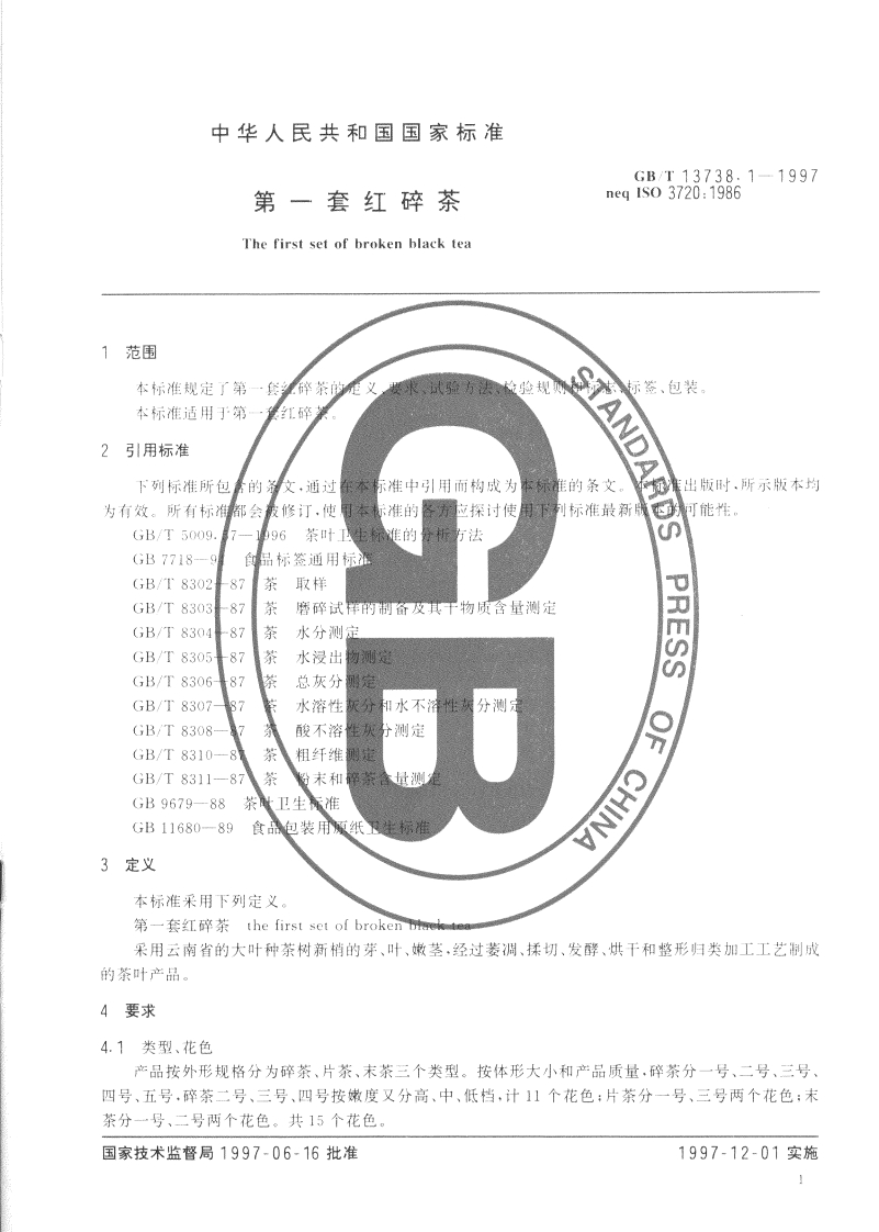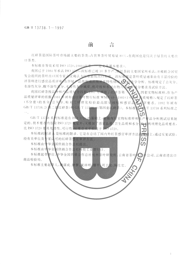 中华人民共和国强制性标准规范GB_T13738.1-1997第一套红碎茶(新版现行)348072@abc1个月前发布关注私信1.35MB8页028中华人民共和国强制性标准规范GB_T13738.1-1997第一套红碎茶(新版现行)此内容为付费资源,请付费后查看¥23¥32黄金会员免费钻石会员免费立即购买您当前未登录!建议登陆后购买,可保存购买订单付费资源 第1页 / 共8页 第2页 / 共8页 第3页 / 共8页 第4页 / 共8页 试读已结束,还剩4页,您可下载完整版后进行离线阅读 THE END农学类标准规范餐饮美食 喜欢就支持一下吧收藏