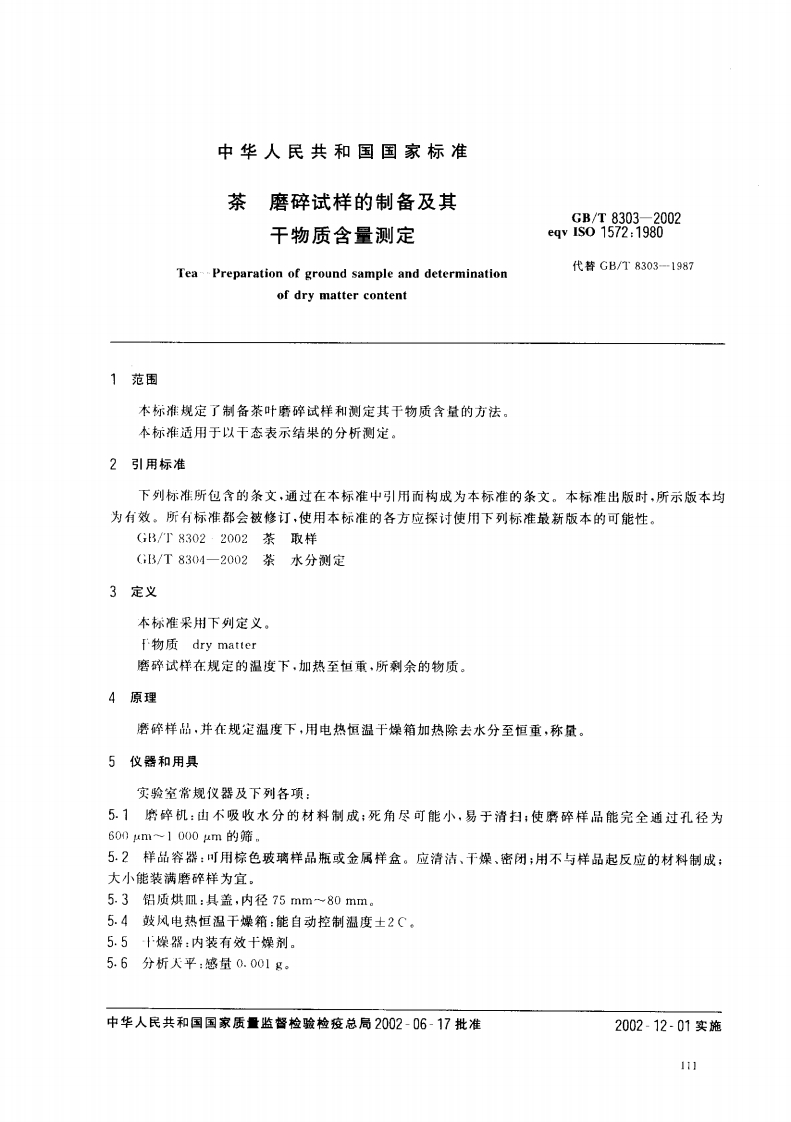 GB_T8303-2002茶磨碎试样的制备及其干物质含量标准测定强制性标准规范348072@abc1个月前发布关注私信84.64KB4页030GB_T8303-2002茶磨碎试样的制备及其干物质含量标准测定强制性标准规范此内容为付费资源,请付费后查看¥13¥19黄金会员免费钻石会员免费立即购买您当前未登录!建议登陆后购买,可保存购买订单付费资源 第1页 / 共4页 第2页 / 共4页 第3页 / 共4页 第4页 / 共4页 已完成全部阅读,共4页 THE END播放器标准规范餐饮美食 喜欢就支持一下吧收藏