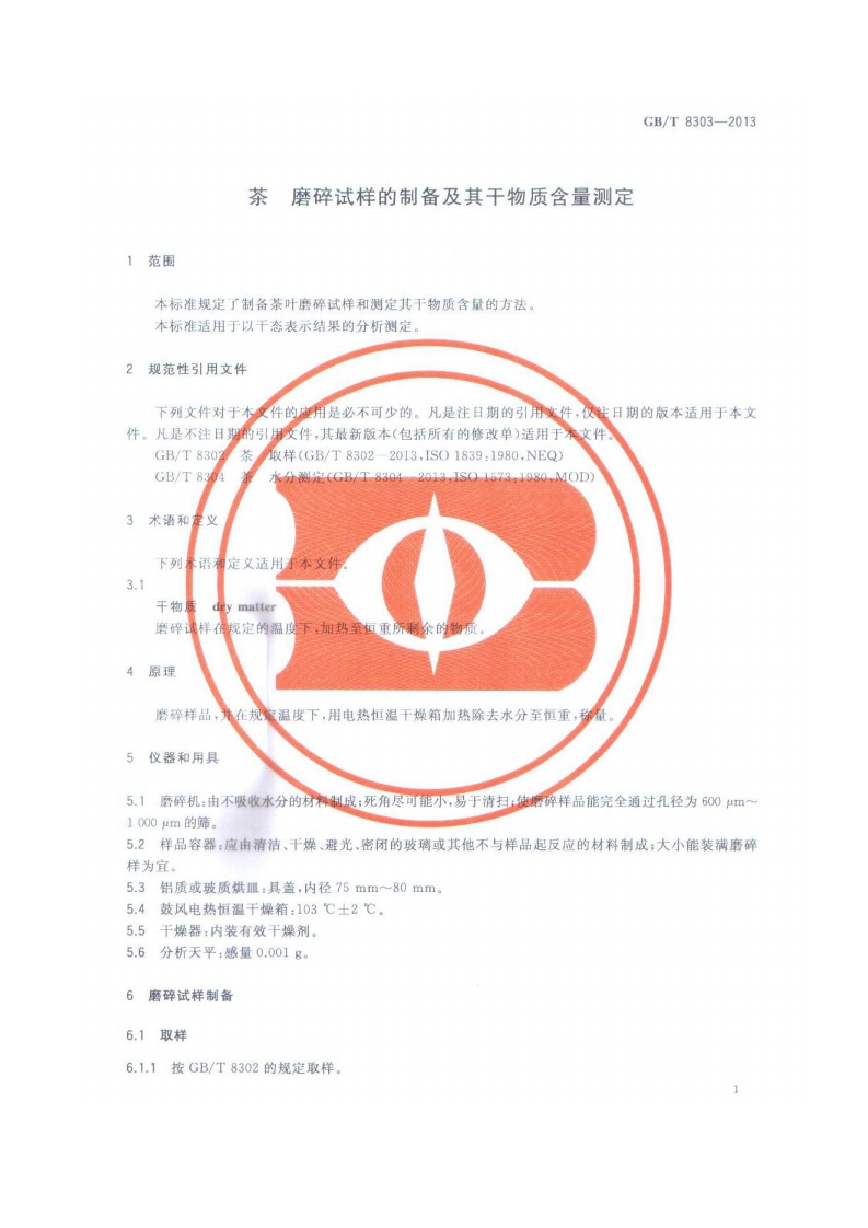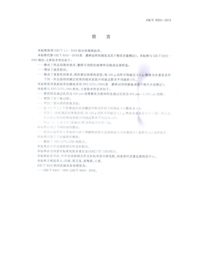 GB_T8303-2013茶磨碎试样的制备及其干物质含量标准测定强制性标准规范348072@abc1个月前发布关注私信0.50MB4页049GB_T8303-2013茶磨碎试样的制备及其干物质含量标准测定强制性标准规范此内容为付费资源,请付费后查看¥13¥19黄金会员免费钻石会员免费立即购买您当前未登录!建议登陆后购买,可保存购买订单付费资源 第1页 / 共4页 第2页 / 共4页 第3页 / 共4页 第4页 / 共4页 已完成全部阅读,共4页 THE END播放器标准规范餐饮美食 喜欢就支持一下吧收藏