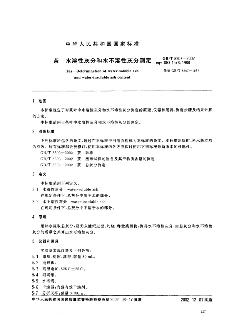 GB_T8307-2002茶水溶性灰分和水不溶性灰分标准测定强制性标准规范348072@abc1个月前发布关注私信0.10MB4页040GB_T8307-2002茶水溶性灰分和水不溶性灰分标准测定强制性标准规范此内容为付费资源,请付费后查看¥13¥19黄金会员免费钻石会员免费立即购买您当前未登录!建议登陆后购买,可保存购买订单付费资源 第1页 / 共4页 第2页 / 共4页 第3页 / 共4页 第4页 / 共4页 已完成全部阅读,共4页 THE END农学类标准规范餐饮美食 喜欢就支持一下吧收藏