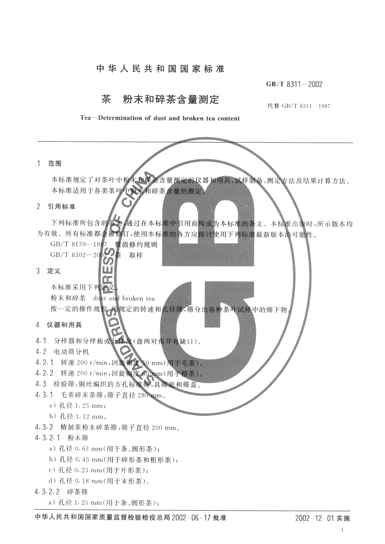 GB_T8311-2002茶粉末和碎茶含量标准测定强制性标准规范348072@abc1个月前发布关注私信0.33MB5页038GB_T8311-2002茶粉末和碎茶含量标准测定强制性标准规范此内容为付费资源,请付费后查看¥13¥19黄金会员免费钻石会员免费立即购买您当前未登录!建议登陆后购买,可保存购买订单付费资源 第1页 / 共5页 第2页 / 共5页 第3页 / 共5页 第4页 / 共5页 试读已结束,还剩1页,您可下载完整版后进行离线阅读 THE END播放器标准规范餐饮美食 喜欢就支持一下吧收藏