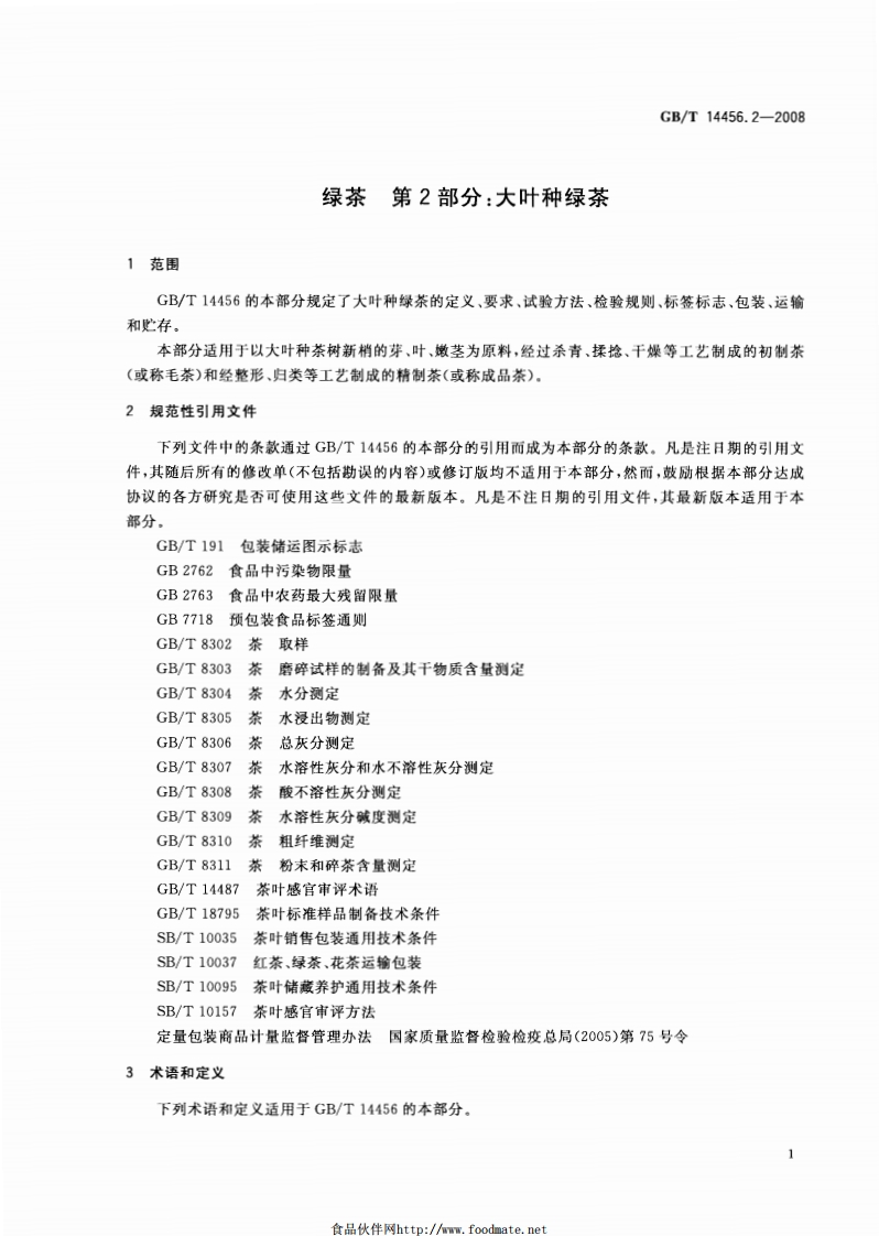 中华人民共和国强制性标准规范GB_T14456.2-2008绿茶第2部分:大叶种绿茶(新版现行)348072@abc1个月前发布关注私信0.16MB8页045中华人民共和国强制性标准规范GB_T14456.2-2008绿茶第2部分:大叶种绿茶(新版现行)此内容为付费资源,请付费后查看¥13¥19黄金会员免费钻石会员免费立即购买您当前未登录!建议登陆后购买,可保存购买订单付费资源 第1页 / 共8页 第2页 / 共8页 第3页 / 共8页 第4页 / 共8页 试读已结束,还剩4页,您可下载完整版后进行离线阅读 THE END农学类标准规范餐饮美食 喜欢就支持一下吧收藏