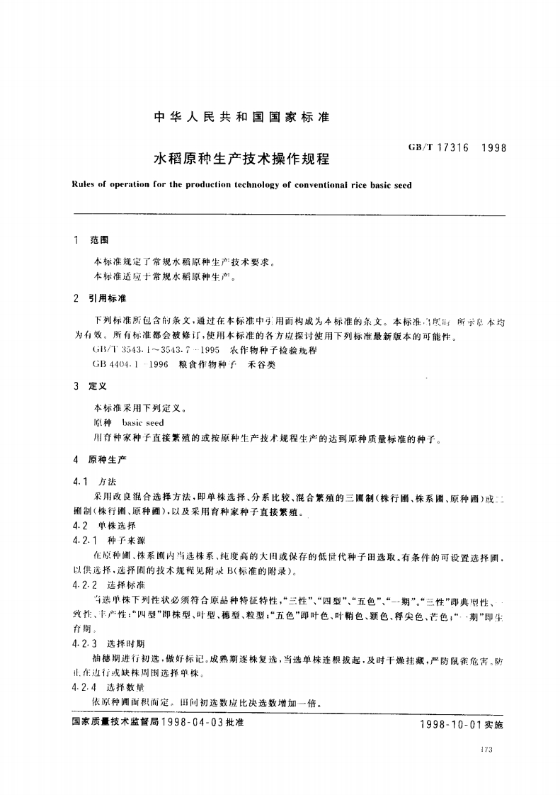 中华人民共和国强制性标准规范GB_T17316-1998水稻原种生产技术操作规程(新版现行)348072@abc1个月前发布关注私信0.17MB6页035中华人民共和国强制性标准规范GB_T17316-1998水稻原种生产技术操作规程(新版现行)此内容为付费资源,请付费后查看¥13¥19黄金会员免费钻石会员免费立即购买您当前未登录!建议登陆后购买,可保存购买订单付费资源 第1页 / 共6页 第2页 / 共6页 第3页 / 共6页 第4页 / 共6页 试读已结束,还剩2页,您可下载完整版后进行离线阅读 THE END农学类标准规范餐饮美食 喜欢就支持一下吧收藏