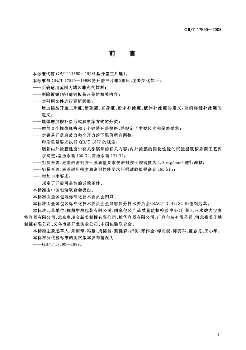 中华人民共和国强制性标准规范GB_T17590-2008铝易开盖三片罐(新版现行)348072@abc14天前发布关注私信0.79MB13页030中华人民共和国强制性标准规范GB_T17590-2008铝易开盖三片罐(新版现行)此内容为付费资源,请付费后查看¥13¥19黄金会员免费钻石会员免费立即购买您当前未登录!建议登陆后购买,可保存购买订单付费资源 第1页 / 共13页 第2页 / 共13页 第3页 / 共13页 第4页 / 共13页 试读已结束,还剩9页,您可下载完整版后进行离线阅读 THE END农学类标准规范餐饮美食 喜欢就支持一下吧收藏