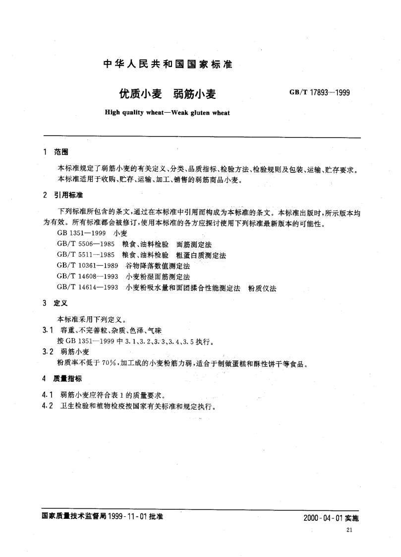 中华人民共和国强制性标准规范GB_T17893-1999优质小麦弱筋小麦(新版现行)348072@abc1个月前发布关注私信0.50MB3页031中华人民共和国强制性标准规范GB_T17893-1999优质小麦弱筋小麦(新版现行)此内容为付费资源,请付费后查看¥13¥19黄金会员免费钻石会员免费立即购买您当前未登录!建议登陆后购买,可保存购买订单付费资源 第1页 / 共3页 第2页 / 共3页 第3页 / 共3页 已完成全部阅读,共3页 THE END播放器标准规范餐饮美食 喜欢就支持一下吧收藏
