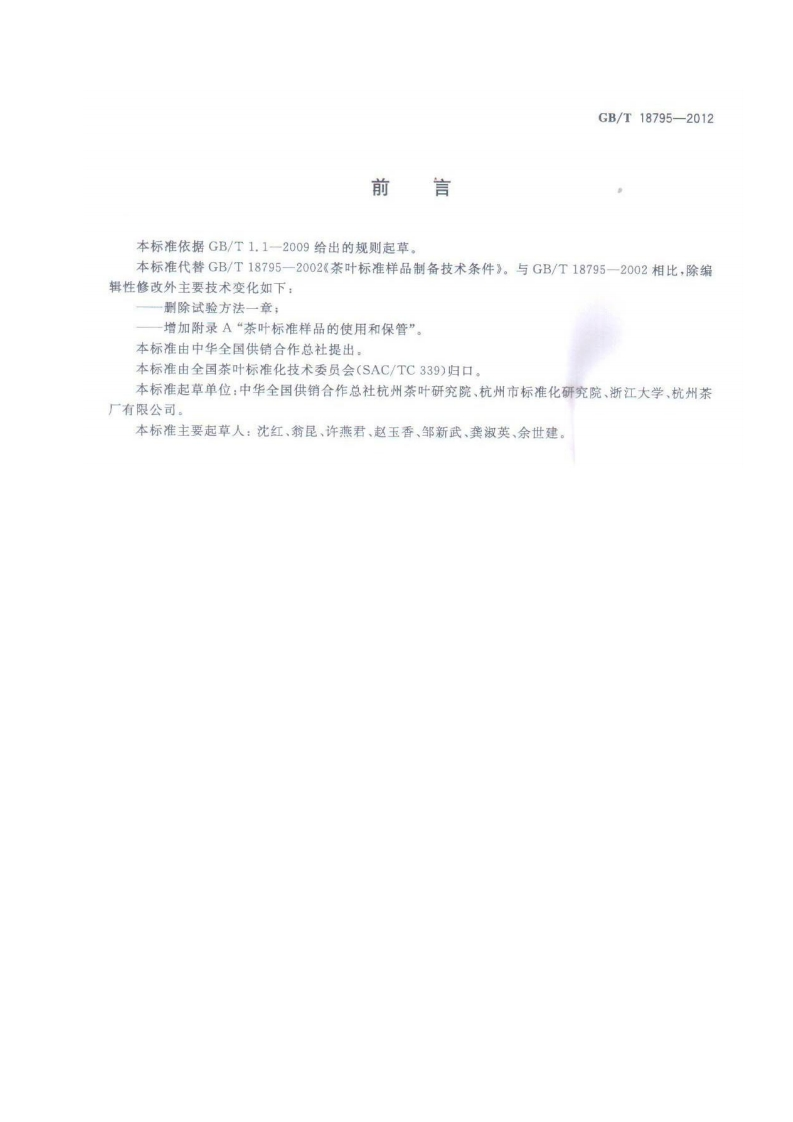 中华人民共和国强制性标准规范GB_T18795-2012茶叶标准样品制备技术条件(新版现行)348072@abc1个月前发布关注私信0.59MB5页039中华人民共和国强制性标准规范GB_T18795-2012茶叶标准样品制备技术条件(新版现行)此内容为付费资源,请付费后查看¥19¥23黄金会员免费钻石会员免费立即购买您当前未登录!建议登陆后购买,可保存购买订单付费资源 第1页 / 共5页 第2页 / 共5页 第3页 / 共5页 第4页 / 共5页 试读已结束,还剩1页,您可下载完整版后进行离线阅读 THE END农学类标准规范餐饮美食 喜欢就支持一下吧收藏