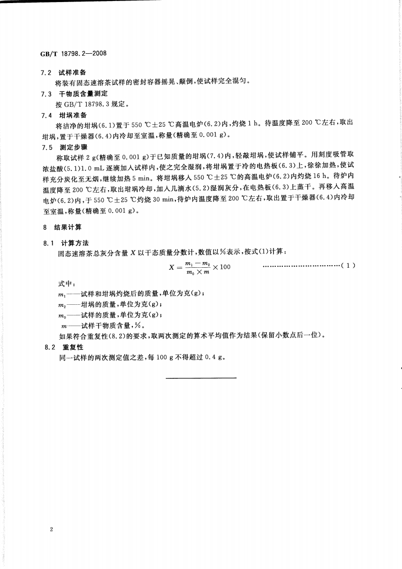 中华人民共和国强制性标准规范GB_T18798.2-2008固态速溶茶第2部分:总灰分标准测定(新版现行)348072@abc1个月前发布关注私信0.29MB4页027中华人民共和国强制性标准规范GB_T18798.2-2008固态速溶茶第2部分:总灰分标准测定(新版现行)此内容为付费资源,请付费后查看¥19¥23黄金会员免费钻石会员免费立即购买您当前未登录!建议登陆后购买,可保存购买订单付费资源 第1页 / 共4页 第2页 / 共4页 第3页 / 共4页 第4页 / 共4页 已完成全部阅读,共4页 THE END农学类标准规范餐饮美食 喜欢就支持一下吧收藏