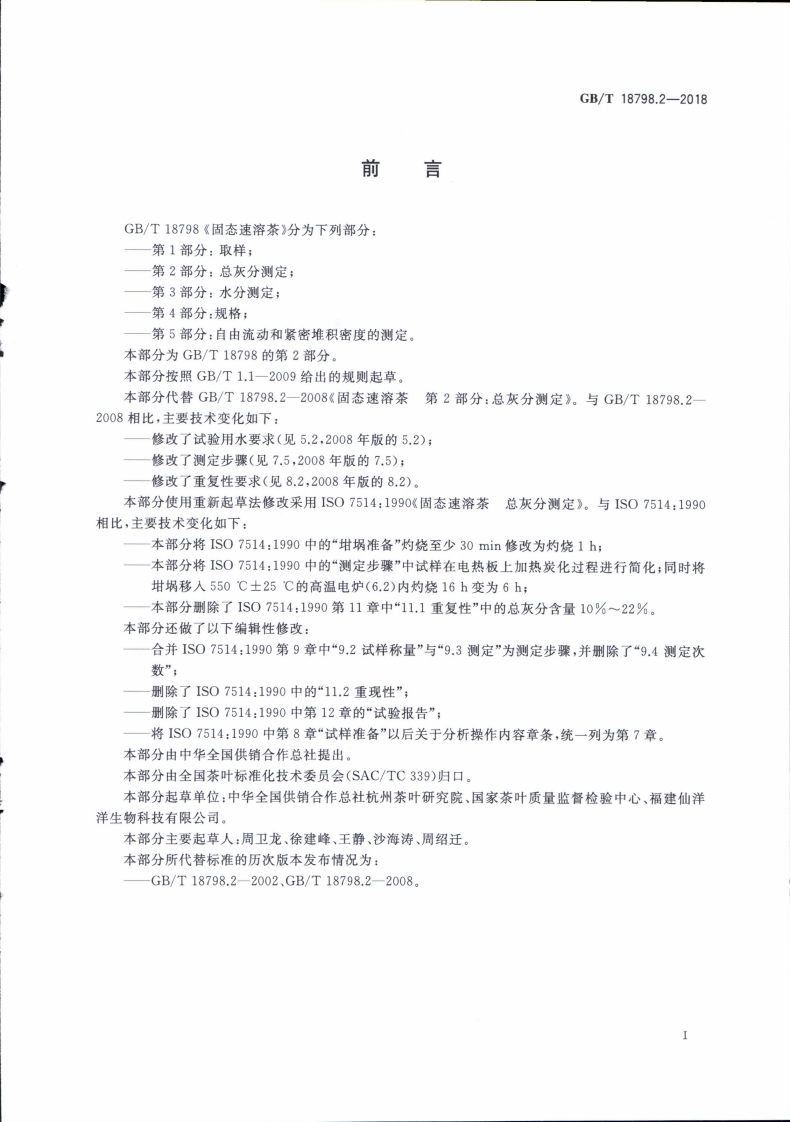 中华人民共和国强制性标准规范GB_T18798.2-2018固态速溶茶第2部分:总灰分标准测定(新版现行)348072@abc1个月前发布关注私信2.61MB5页020中华人民共和国强制性标准规范GB_T18798.2-2018固态速溶茶第2部分:总灰分标准测定(新版现行)此内容为付费资源,请付费后查看¥19¥23黄金会员免费钻石会员免费立即购买您当前未登录!建议登陆后购买,可保存购买订单付费资源 第1页 / 共5页 第2页 / 共5页 第3页 / 共5页 第4页 / 共5页 试读已结束,还剩1页,您可下载完整版后进行离线阅读 THE END农学类标准规范餐饮美食 喜欢就支持一下吧收藏
