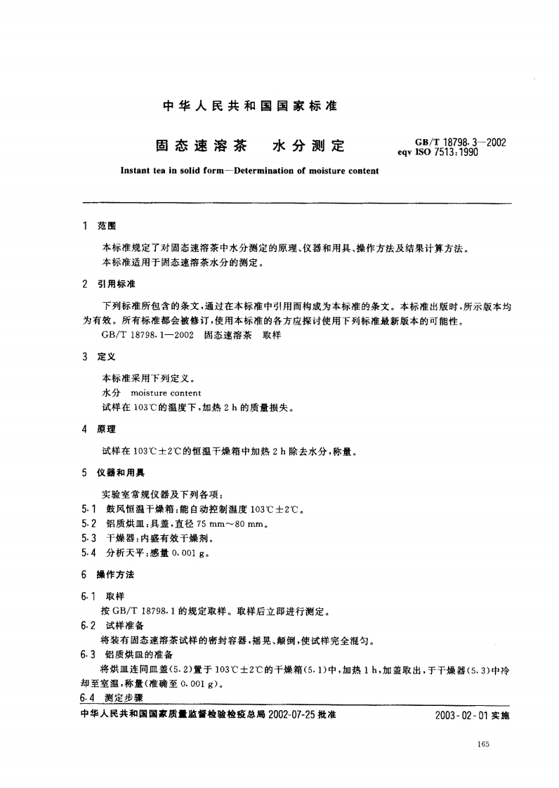 中华人民共和国强制性标准规范GB_T18798.3-2002固态速溶茶水分标准测定(新版现行)348072@abc46天前发布关注私信77.25KB4页024中华人民共和国强制性标准规范GB_T18798.3-2002固态速溶茶水分标准测定(新版现行)此内容为付费资源,请付费后查看¥19¥23黄金会员免费钻石会员免费立即购买您当前未登录!建议登陆后购买,可保存购买订单付费资源 第1页 / 共4页 第2页 / 共4页 第3页 / 共4页 第4页 / 共4页 已完成全部阅读,共4页 THE END农学类标准规范餐饮美食 喜欢就支持一下吧收藏