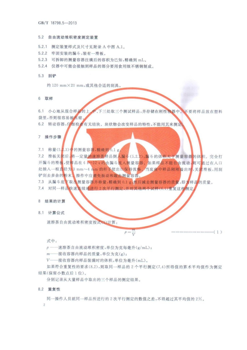 中华人民共和国强制性标准规范GB_T18798.5-2013固态速溶茶第5部分:自由流动和紧密堆积密度的标准测定(新版现行)348072@abc46天前发布关注私信0.93MB8页045中华人民共和国强制性标准规范GB_T18798.5-2013固态速溶茶第5部分:自由流动和紧密堆积密度的标准测定(新版现行)此内容为付费资源,请付费后查看¥19¥23黄金会员免费钻石会员免费立即购买您当前未登录!建议登陆后购买,可保存购买订单付费资源 第1页 / 共8页 第2页 / 共8页 第3页 / 共8页 第4页 / 共8页 试读已结束,还剩4页,您可下载完整版后进行离线阅读 THE END农学类标准规范餐饮美食 喜欢就支持一下吧收藏