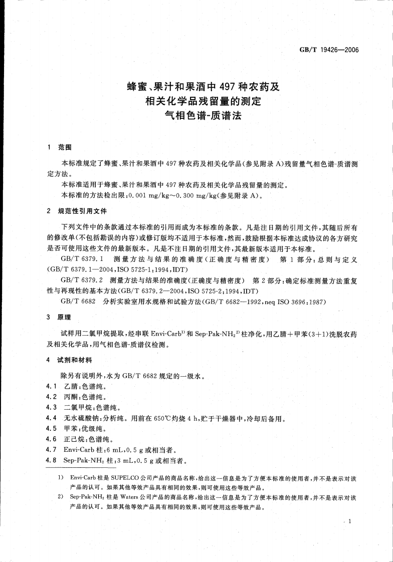 中华人民共和国强制性标准规范GB_T19426-2006蜂蜜、果汁和果酒中497种农药及相关化学品残留量的标准测定气相色谱-质谱法(新版现行)348072@abc1个月前发布关注私信4.37MB71页049中华人民共和国强制性标准规范GB_T19426-2006蜂蜜、果汁和果酒中497种农药及相关化学品残留量的标准测定气相色谱-质谱法(新版现行)此内容为付费资源,请付费后查看¥19¥23黄金会员免费钻石会员免费立即购买您当前未登录!建议登陆后购买,可保存购买订单付费资源 第1页 / 共71页 第2页 / 共71页 第3页 / 共71页 第4页 / 共71页 试读已结束,还剩67页,您可下载完整版后进行离线阅读 THE END农学类标准规范餐饮美食 喜欢就支持一下吧收藏