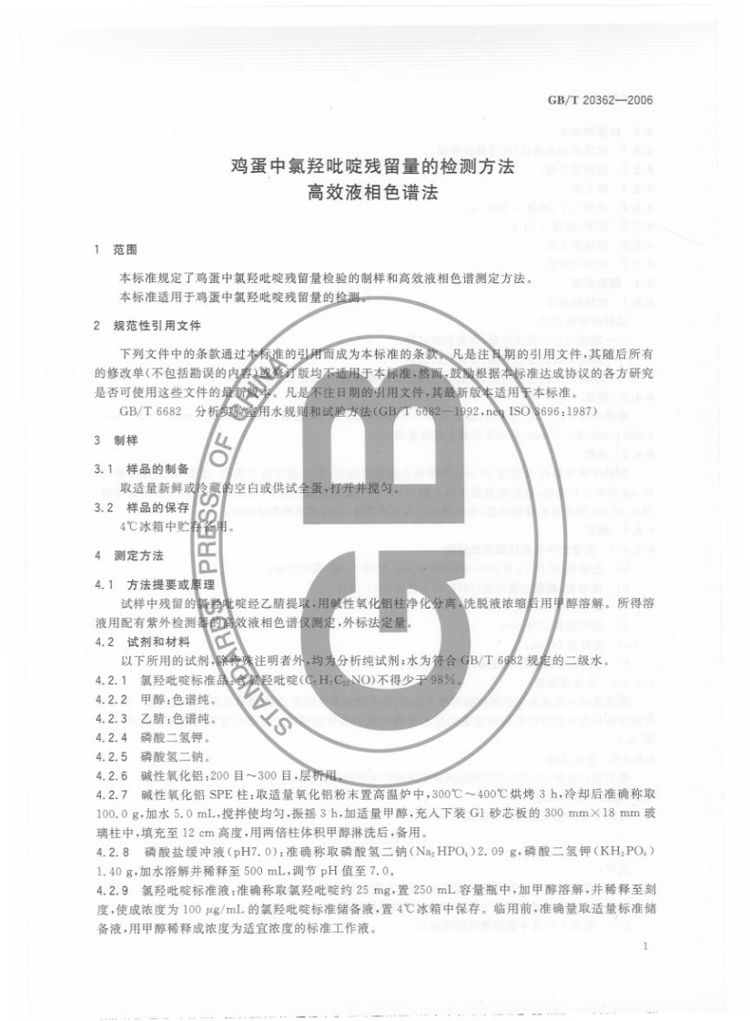 中华人民共和国强制性标准规范GB_T20362-2006鸡蛋中氯羟吡啶残留量的检测标准方法高效液相色谱法(新版现行)348072@abc21天前发布关注私信0.70MB7页047中华人民共和国强制性标准规范GB_T20362-2006鸡蛋中氯羟吡啶残留量的检测标准方法高效液相色谱法(新版现行)此内容为付费资源,请付费后查看¥13¥19黄金会员免费钻石会员免费立即购买您当前未登录!建议登陆后购买,可保存购买订单付费资源 第1页 / 共7页 第2页 / 共7页 第3页 / 共7页 第4页 / 共7页 第5页 / 共7页 试读已结束,还剩2页,您可下载完整版后进行离线阅读 THE END农学类标准规范餐饮美食 喜欢就支持一下吧收藏