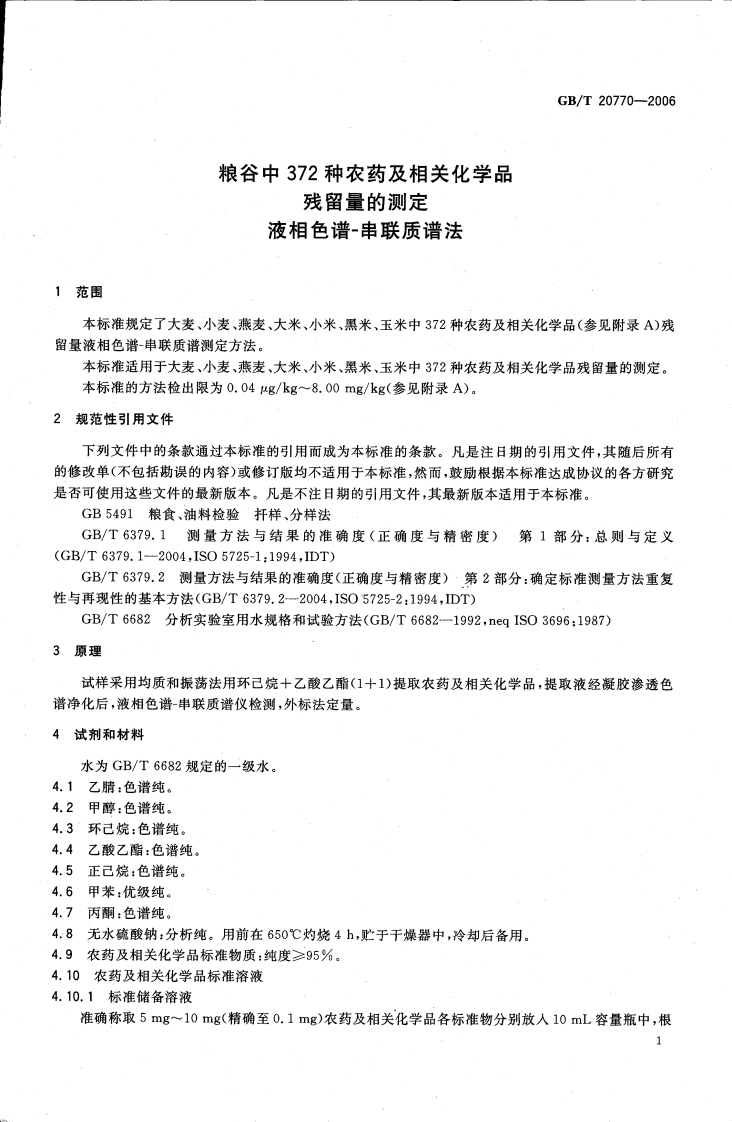 中华人民共和国强制性标准规范GB_T20770-2006粮谷中372种农药及相关化学品残留量的标准测定液相色谱-串联质谱法(新版现行)348072@abc1个月前发布关注私信3.73MB67页026中华人民共和国强制性标准规范GB_T20770-2006粮谷中372种农药及相关化学品残留量的标准测定液相色谱-串联质谱法(新版现行)此内容为付费资源,请付费后查看¥13¥19黄金会员免费钻石会员免费立即购买您当前未登录!建议登陆后购买,可保存购买订单付费资源 第1页 / 共67页 第2页 / 共67页 第3页 / 共67页 第4页 / 共67页 第5页 / 共67页 试读已结束,还剩62页,您可下载完整版后进行离线阅读 THE END播放器标准规范餐饮美食 喜欢就支持一下吧收藏
