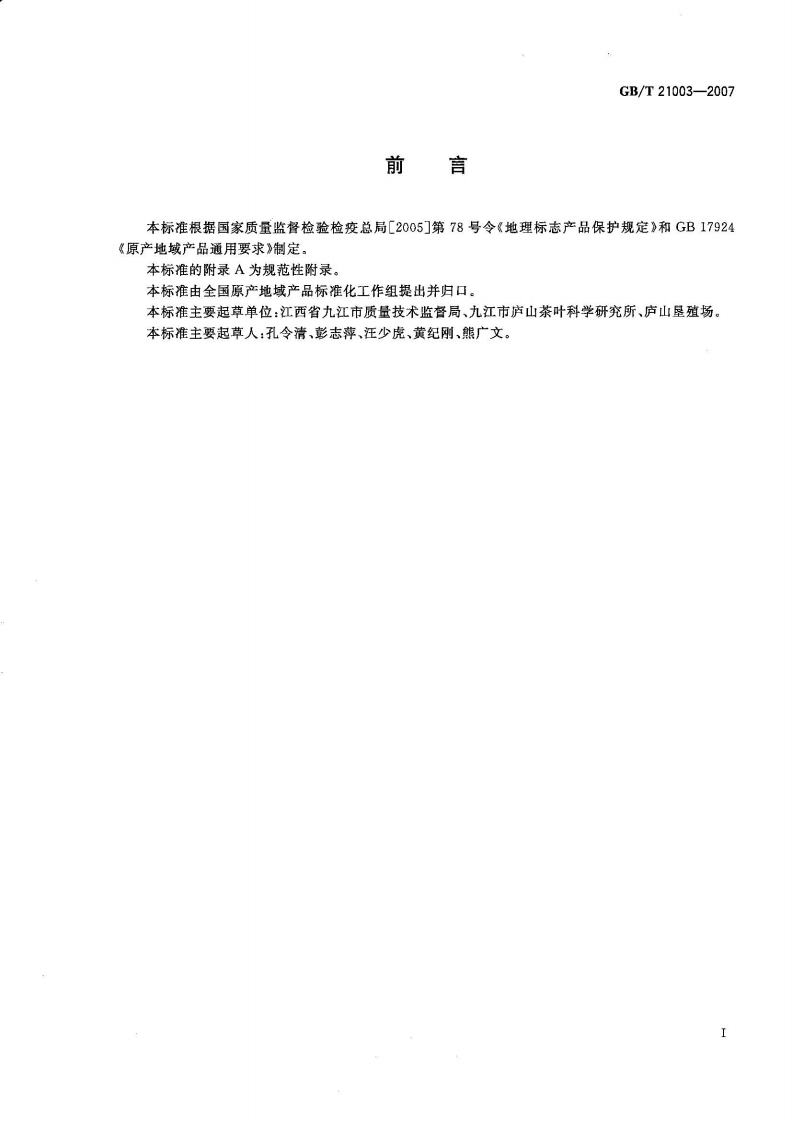中华人民共和国强制性标准规范GB_T21003-2007地理标志产品庐山云雾茶(新版现行)348072@abc1个月前发布关注私信2.18MB7页037中华人民共和国强制性标准规范GB_T21003-2007地理标志产品庐山云雾茶(新版现行)此内容为付费资源,请付费后查看¥13¥19黄金会员免费钻石会员免费立即购买您当前未登录!建议登陆后购买,可保存购买订单付费资源 第1页 / 共7页 第2页 / 共7页 第3页 / 共7页 第4页 / 共7页 第5页 / 共7页 试读已结束,还剩2页,您可下载完整版后进行离线阅读 THE END农学类标准规范餐饮美食 喜欢就支持一下吧收藏