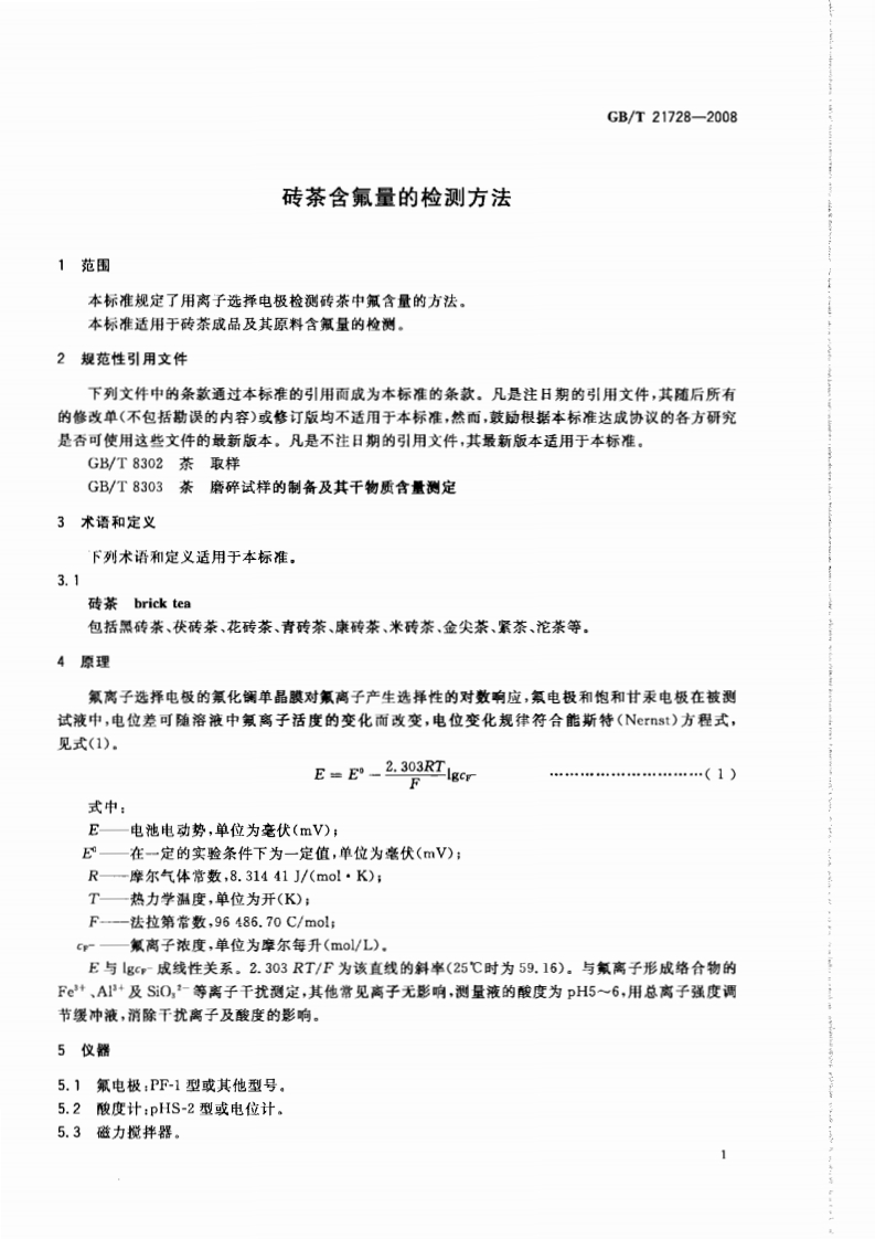 中华人民共和国强制性标准规范GB_T21728-2008砖茶含氟量的检测标准方法(新版现行)348072@abc3个月前发布关注私信79.57KB5页028中华人民共和国强制性标准规范GB_T21728-2008砖茶含氟量的检测标准方法(新版现行)此内容为付费资源,请付费后查看¥13¥19黄金会员免费钻石会员免费立即购买您当前未登录!建议登陆后购买,可保存购买订单付费资源 第1页 / 共5页 第2页 / 共5页 第3页 / 共5页 第4页 / 共5页 第5页 / 共5页 已完成全部阅读,共5页 THE END播放器标准规范餐饮美食 喜欢就支持一下吧收藏