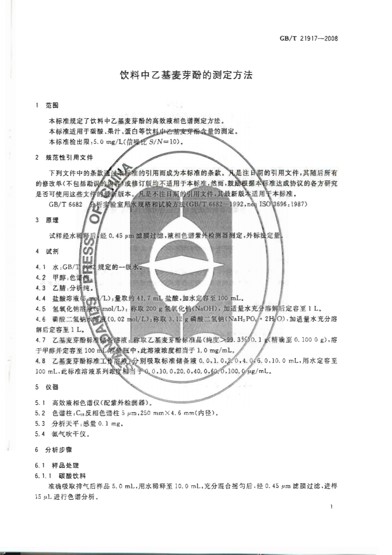 中华人民共和国强制性标准规范GB_T21917-2008饮料中乙基麦芽酚的标准测定标准方法(新版现行)348072@abc1个月前发布关注私信0.25MB5页025中华人民共和国强制性标准规范GB_T21917-2008饮料中乙基麦芽酚的标准测定标准方法(新版现行)此内容为付费资源,请付费后查看¥13¥19黄金会员免费钻石会员免费立即购买您当前未登录!建议登陆后购买,可保存购买订单付费资源 第1页 / 共5页 第2页 / 共5页 第3页 / 共5页 第4页 / 共5页 第5页 / 共5页 已完成全部阅读,共5页 THE END农学类标准规范餐饮美食 喜欢就支持一下吧收藏