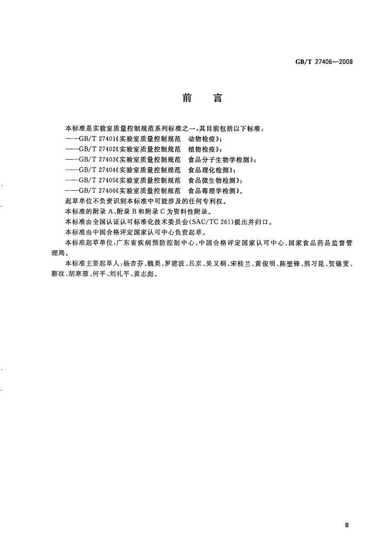 GB_T27406-2008实验室质量控制规范食品毒理学检测348072@abc1个月前发布关注私信1.85MB32页022GB_T27406-2008实验室质量控制规范食品毒理学检测此内容为付费资源,请付费后查看¥19¥23黄金会员免费钻石会员免费立即购买您当前未登录!建议登陆后购买,可保存购买订单付费资源 第1页 / 共32页 第2页 / 共32页 第3页 / 共32页 第4页 / 共32页 第5页 / 共32页 试读已结束,还剩27页,您可下载完整版后进行离线阅读 THE END播放器标准规范餐饮美食 喜欢就支持一下吧收藏