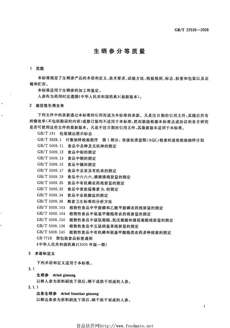 中华人民共和国强制性标准规范GB_T22536-2008生晒参分等质量(新版现行)348072@abc1个月前发布关注私信0.60MB17页039中华人民共和国强制性标准规范GB_T22536-2008生晒参分等质量(新版现行)此内容为付费资源,请付费后查看¥19¥21黄金会员免费钻石会员免费立即购买您当前未登录!建议登陆后购买,可保存购买订单付费资源 第1页 / 共17页 第2页 / 共17页 第3页 / 共17页 第4页 / 共17页 第5页 / 共17页 试读已结束,还剩12页,您可下载完整版后进行离线阅读 THE END播放器标准规范餐饮美食 喜欢就支持一下吧收藏