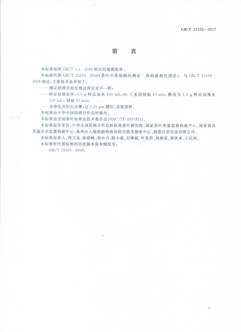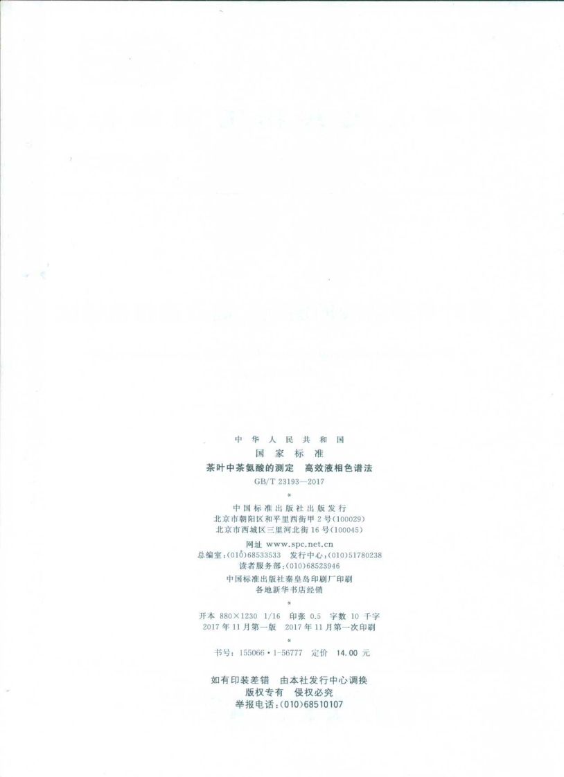 中华人民共和国强制性标准规范GB_T23193-2017茶叶中茶氨酸的标准测定高效液相色谱法(新版现行)348072@abc15天前发布关注私信0.63MB7页021中华人民共和国强制性标准规范GB_T23193-2017茶叶中茶氨酸的标准测定高效液相色谱法(新版现行)此内容为付费资源,请付费后查看¥19¥21黄金会员免费钻石会员免费立即购买您当前未登录!建议登陆后购买,可保存购买订单付费资源 第1页 / 共7页 第2页 / 共7页 第3页 / 共7页 第4页 / 共7页 第5页 / 共7页 试读已结束,还剩2页,您可下载完整版后进行离线阅读 THE END农学类标准规范餐饮美食 喜欢就支持一下吧收藏