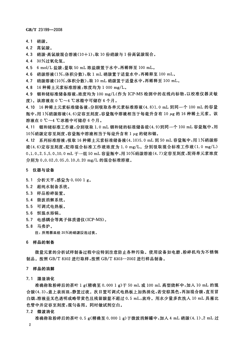 中华人民共和国强制性标准规范GB_T23199-2008茶叶中稀土元素的标准测定电感耦合等离子体发射光谱法和电感耦合等离子体质谱法(新版现行)348072@abc15天前发布关注私信0.36MB9页046中华人民共和国强制性标准规范GB_T23199-2008茶叶中稀土元素的标准测定电感耦合等离子体发射光谱法和电感耦合等离子体质谱法(新版现行)此内容为付费资源,请付费后查看¥19¥21黄金会员免费钻石会员免费立即购买您当前未登录!建议登陆后购买,可保存购买订单付费资源 第1页 / 共9页 第2页 / 共9页 第3页 / 共9页 第4页 / 共9页 第5页 / 共9页 试读已结束,还剩4页,您可下载完整版后进行离线阅读 THE END农学类标准规范餐饮美食 喜欢就支持一下吧收藏