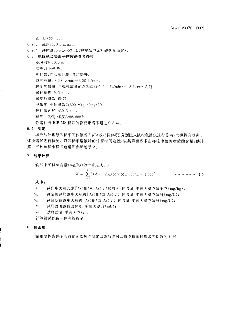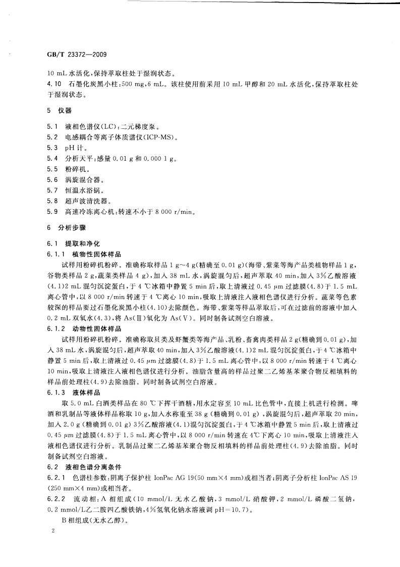 中华人民共和国强制性标准规范GB_T23372-2009食品中无机砷的标准测定液相色谱-电感耦合等离子体质谱法(新版现行)348072@abc1个月前发布关注私信0.34MB6页030中华人民共和国强制性标准规范GB_T23372-2009食品中无机砷的标准测定液相色谱-电感耦合等离子体质谱法(新版现行)此内容为付费资源,请付费后查看¥19¥21黄金会员免费钻石会员免费立即购买您当前未登录!建议登陆后购买,可保存购买订单付费资源 第1页 / 共6页 第2页 / 共6页 第3页 / 共6页 第4页 / 共6页 第5页 / 共6页 试读已结束,还剩1页,您可下载完整版后进行离线阅读 THE END农学类标准规范餐饮美食 喜欢就支持一下吧收藏