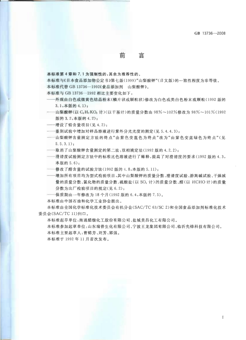 GB13736-2008食品添加剂山梨酸钾348072@abc1个月前发布关注私信0.35MB10页048GB13736-2008食品添加剂山梨酸钾此内容为付费资源,请付费后查看¥19¥23黄金会员免费钻石会员免费立即购买您当前未登录!建议登陆后购买,可保存购买订单付费资源 第1页 / 共10页 第2页 / 共10页 第3页 / 共10页 第4页 / 共10页 第5页 / 共10页 试读已结束,还剩5页,您可下载完整版后进行离线阅读 THE END播放器标准规范餐饮美食 喜欢就支持一下吧收藏
