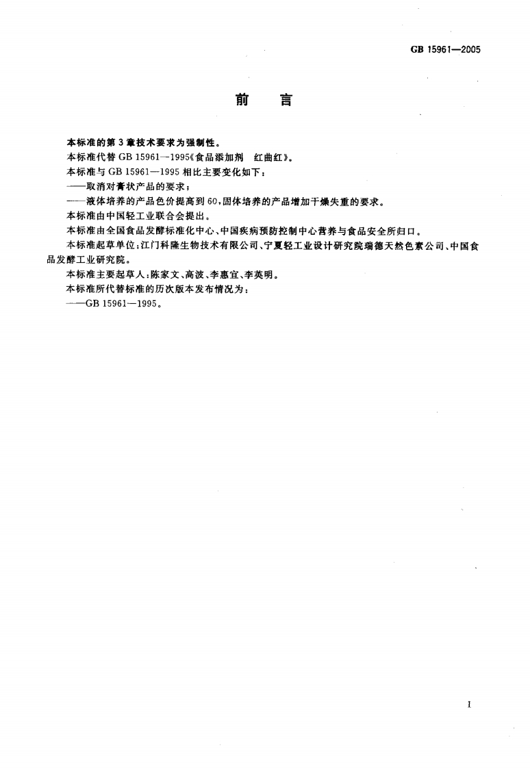 GB15961-2005食品添加剂红曲红348072@abc1个月前发布关注私信0.12MB5页042GB15961-2005食品添加剂红曲红此内容为付费资源,请付费后查看¥19¥23黄金会员免费钻石会员免费立即购买您当前未登录!建议登陆后购买,可保存购买订单付费资源 第1页 / 共5页 第2页 / 共5页 第3页 / 共5页 第4页 / 共5页 第5页 / 共5页 已完成全部阅读,共5页 THE END农学类标准规范餐饮美食 喜欢就支持一下吧收藏