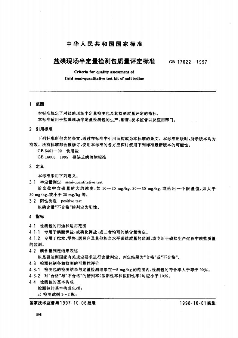 GB17022-1997盐碘现场半定量检测包质量评定标准348072@abc3个月前发布关注私信72.74KB4页022GB17022-1997盐碘现场半定量检测包质量评定标准此内容为付费资源,请付费后查看¥19¥23黄金会员免费钻石会员免费立即购买您当前未登录!建议登陆后购买,可保存购买订单付费资源 第1页 / 共4页 第2页 / 共4页 第3页 / 共4页 第4页 / 共4页 已完成全部阅读,共4页 THE END播放器标准规范餐饮美食 喜欢就支持一下吧收藏