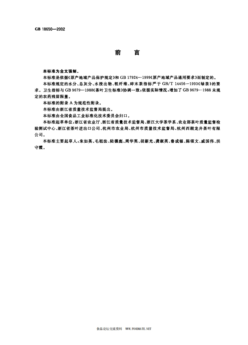 GB18650-2002原产地域产品龙井茶348072@abc1个月前发布关注私信0.27MB8页044GB18650-2002原产地域产品龙井茶此内容为付费资源,请付费后查看¥19¥26黄金会员免费钻石会员免费立即购买您当前未登录!建议登陆后购买,可保存购买订单付费资源 第1页 / 共8页 第2页 / 共8页 第3页 / 共8页 第4页 / 共8页 第5页 / 共8页 试读已结束,还剩3页,您可下载完整版后进行离线阅读 THE END农学类标准规范餐饮美食 喜欢就支持一下吧收藏