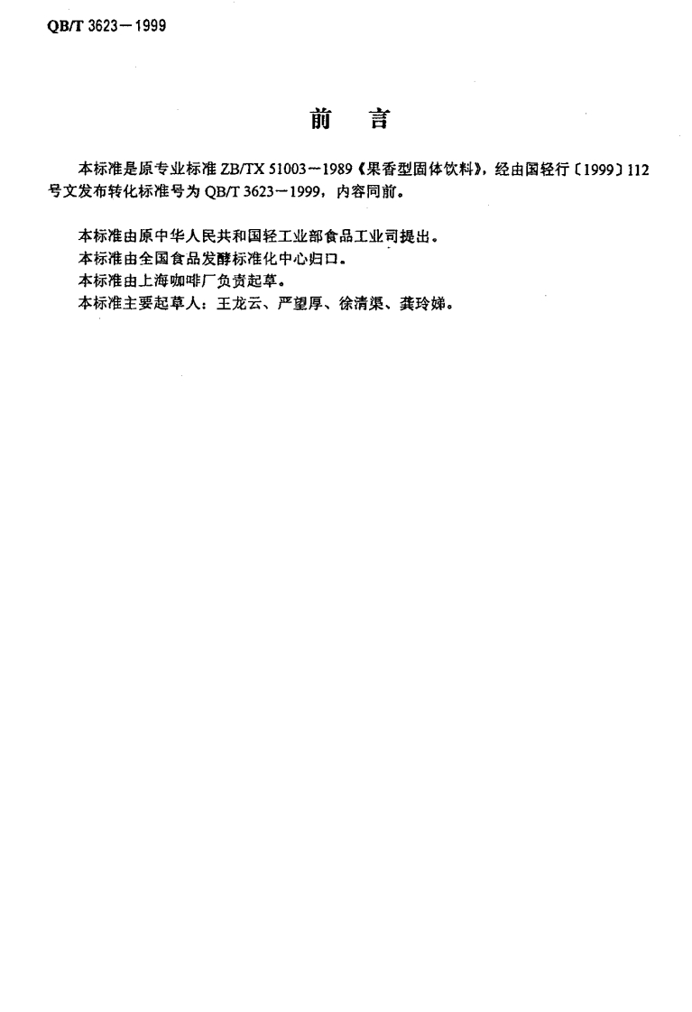 QB_T3623-1999果香型固体饮料348072@abc1个月前发布关注私信0.20MB8页043QB_T3623-1999果香型固体饮料此内容为付费资源,请付费后查看¥13¥29黄金会员免费钻石会员免费立即购买您当前未登录!建议登陆后购买,可保存购买订单付费资源 第1页 / 共8页 第2页 / 共8页 第3页 / 共8页 第4页 / 共8页 第5页 / 共8页 试读已结束,还剩3页,您可下载完整版后进行离线阅读 THE END农学类标准规范餐饮美食 喜欢就支持一下吧收藏