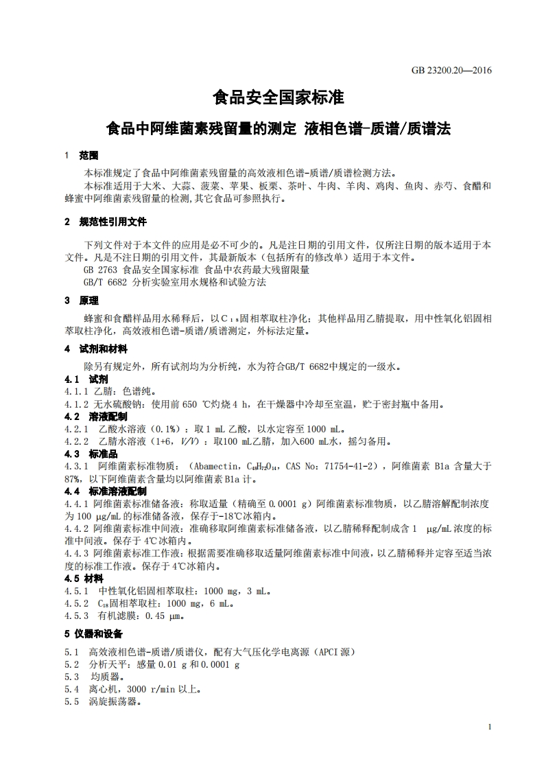 GB23200.20-2016食品安全国家强制性标准规范食品中阿维菌素残留量的标准测定液相色谱-质谱_质谱法348072@abc12天前发布关注私信0.47MB10页044GB23200.20-2016食品安全国家强制性标准规范食品中阿维菌素残留量的标准测定液相色谱-质谱_质谱法此内容为付费资源,请付费后查看¥19¥26黄金会员免费钻石会员免费立即购买您当前未登录!建议登陆后购买,可保存购买订单付费资源 第1页 / 共10页 第2页 / 共10页 第3页 / 共10页 第4页 / 共10页 第5页 / 共10页 试读已结束,还剩5页,您可下载完整版后进行离线阅读 THE END农学类标准规范餐饮美食 喜欢就支持一下吧收藏