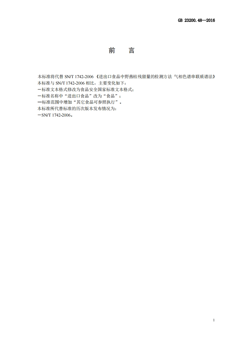 GB23200.48-2016食品安全国家强制性标准规范食品中野燕枯残留量的标准测定气相色谱-质谱法348072@abc1个月前发布关注私信0.50MB12页021GB23200.48-2016食品安全国家强制性标准规范食品中野燕枯残留量的标准测定气相色谱-质谱法此内容为付费资源,请付费后查看¥19¥26黄金会员免费钻石会员免费立即购买您当前未登录!建议登陆后购买,可保存购买订单付费资源 第1页 / 共12页 第2页 / 共12页 第3页 / 共12页 第4页 / 共12页 第5页 / 共12页 试读已结束,还剩7页,您可下载完整版后进行离线阅读 THE END播放器标准规范餐饮美食 喜欢就支持一下吧收藏