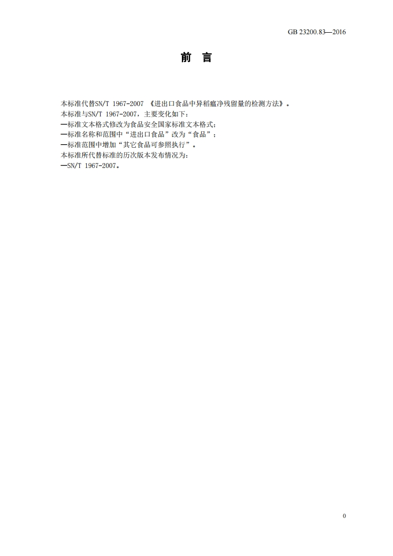 GB23200.83-2016食品安全国家强制性标准规范食品中异稻瘟净残留量的检测标准方法348072@abc1个月前发布关注私信0.50MB18页022GB23200.83-2016食品安全国家强制性标准规范食品中异稻瘟净残留量的检测标准方法此内容为付费资源,请付费后查看¥19¥26黄金会员免费钻石会员免费立即购买您当前未登录!建议登陆后购买,可保存购买订单付费资源 第1页 / 共18页 第2页 / 共18页 第3页 / 共18页 第4页 / 共18页 第5页 / 共18页 试读已结束,还剩13页,您可下载完整版后进行离线阅读 THE END农学类标准规范餐饮美食 喜欢就支持一下吧收藏