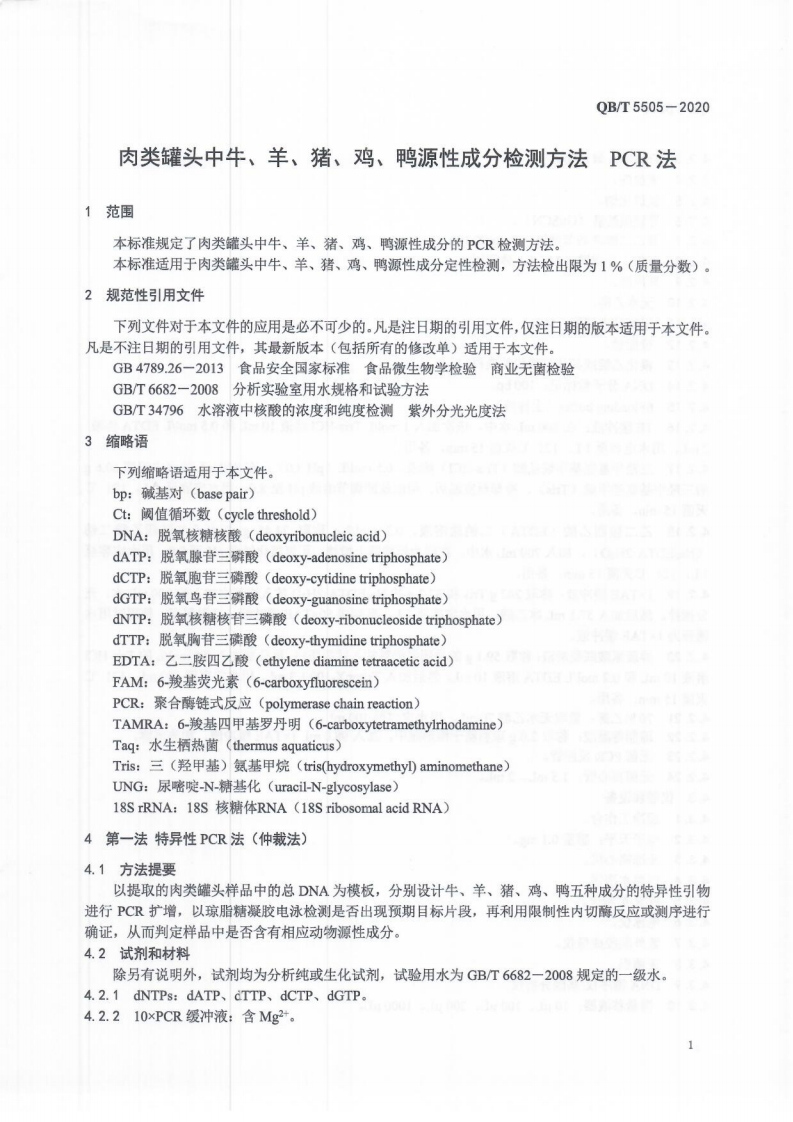 QB_T5505-2020肉类罐头中牛、羊、猪、鸡、鸭源性成分检测标准方法PCR法348072@abc28天前发布关注私信1.79MB12页045QB_T5505-2020肉类罐头中牛、羊、猪、鸡、鸭源性成分检测标准方法PCR法此内容为付费资源,请付费后查看¥13¥29黄金会员免费钻石会员免费立即购买您当前未登录!建议登陆后购买,可保存购买订单付费资源 第1页 / 共12页 第2页 / 共12页 第3页 / 共12页 第4页 / 共12页 第5页 / 共12页 试读已结束,还剩7页,您可下载完整版后进行离线阅读 THE END农学类标准规范餐饮美食 喜欢就支持一下吧收藏