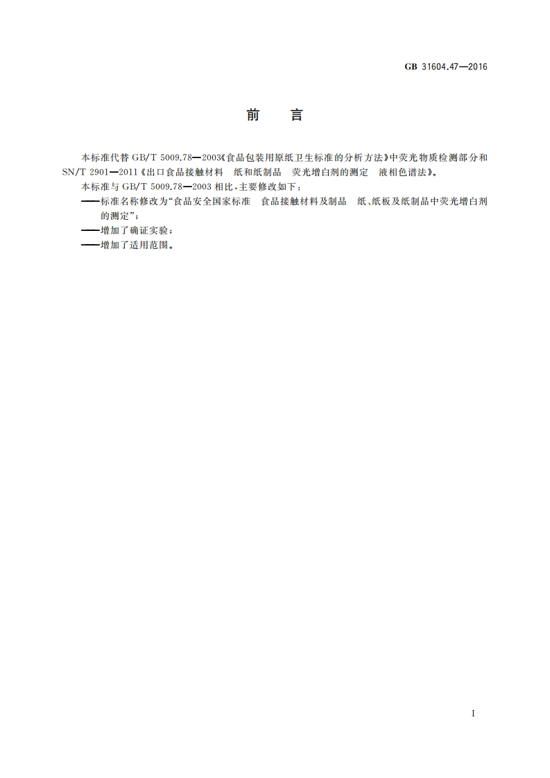 GB31604.47-2016食品安全国家强制性标准规范食品接触材料及制品纸、纸板及纸制品中荧光增白剂的标准测定348072@abc28天前发布关注私信0.31MB6页040GB31604.47-2016食品安全国家强制性标准规范食品接触材料及制品纸、纸板及纸制品中荧光增白剂的标准测定此内容为付费资源,请付费后查看¥19¥21黄金会员免费钻石会员免费立即购买您当前未登录!建议登陆后购买,可保存购买订单付费资源 第1页 / 共6页 第2页 / 共6页 第3页 / 共6页 第4页 / 共6页 第5页 / 共6页 试读已结束,还剩1页,您可下载完整版后进行离线阅读 THE END农学类标准规范餐饮美食 喜欢就支持一下吧收藏