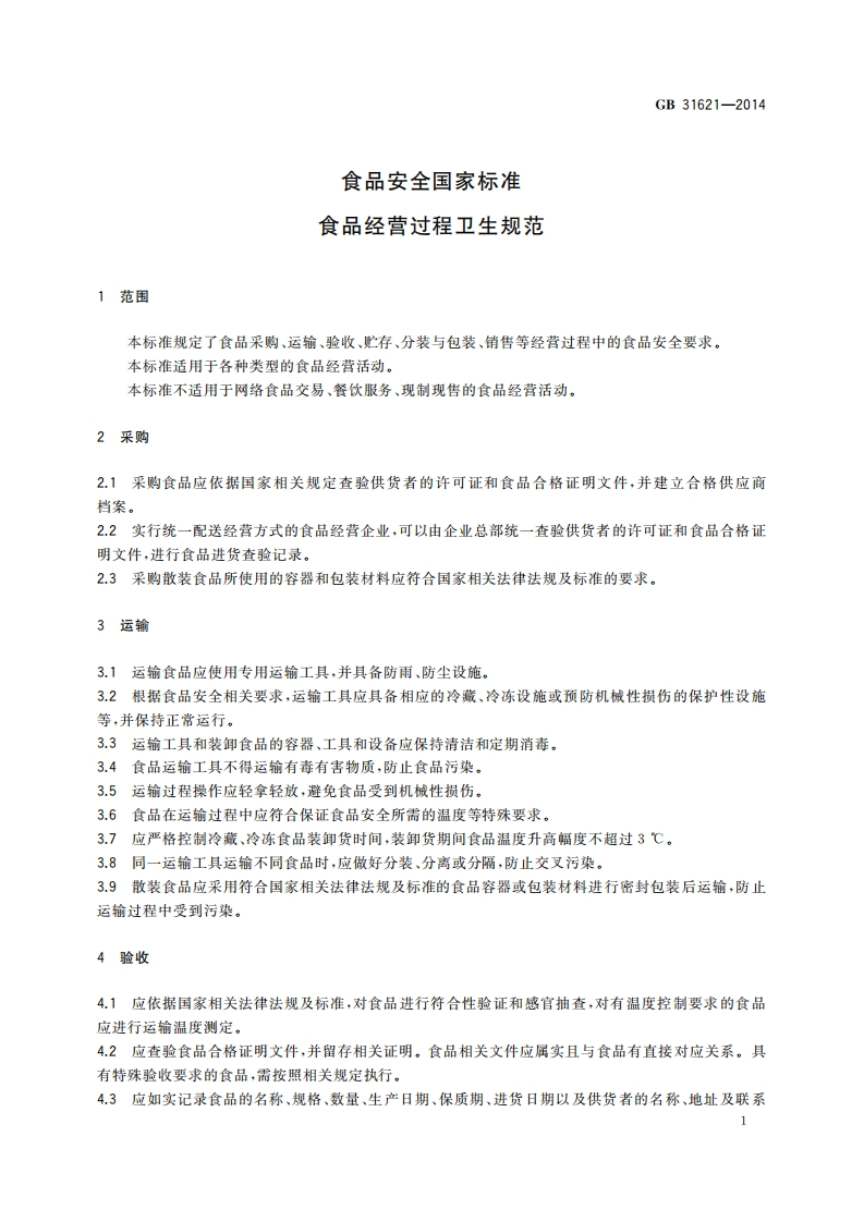 GB31621-2014食品安全国家强制性标准规范食品经营过程卫生规范348072@abc1个月前发布关注私信0.33MB5页030GB31621-2014食品安全国家强制性标准规范食品经营过程卫生规范此内容为付费资源,请付费后查看¥19¥21黄金会员免费钻石会员免费立即购买您当前未登录!建议登陆后购买,可保存购买订单付费资源 第1页 / 共5页 第2页 / 共5页 第3页 / 共5页 第4页 / 共5页 第5页 / 共5页 已完成全部阅读,共5页 THE END农学类标准规范餐饮美食 喜欢就支持一下吧收藏