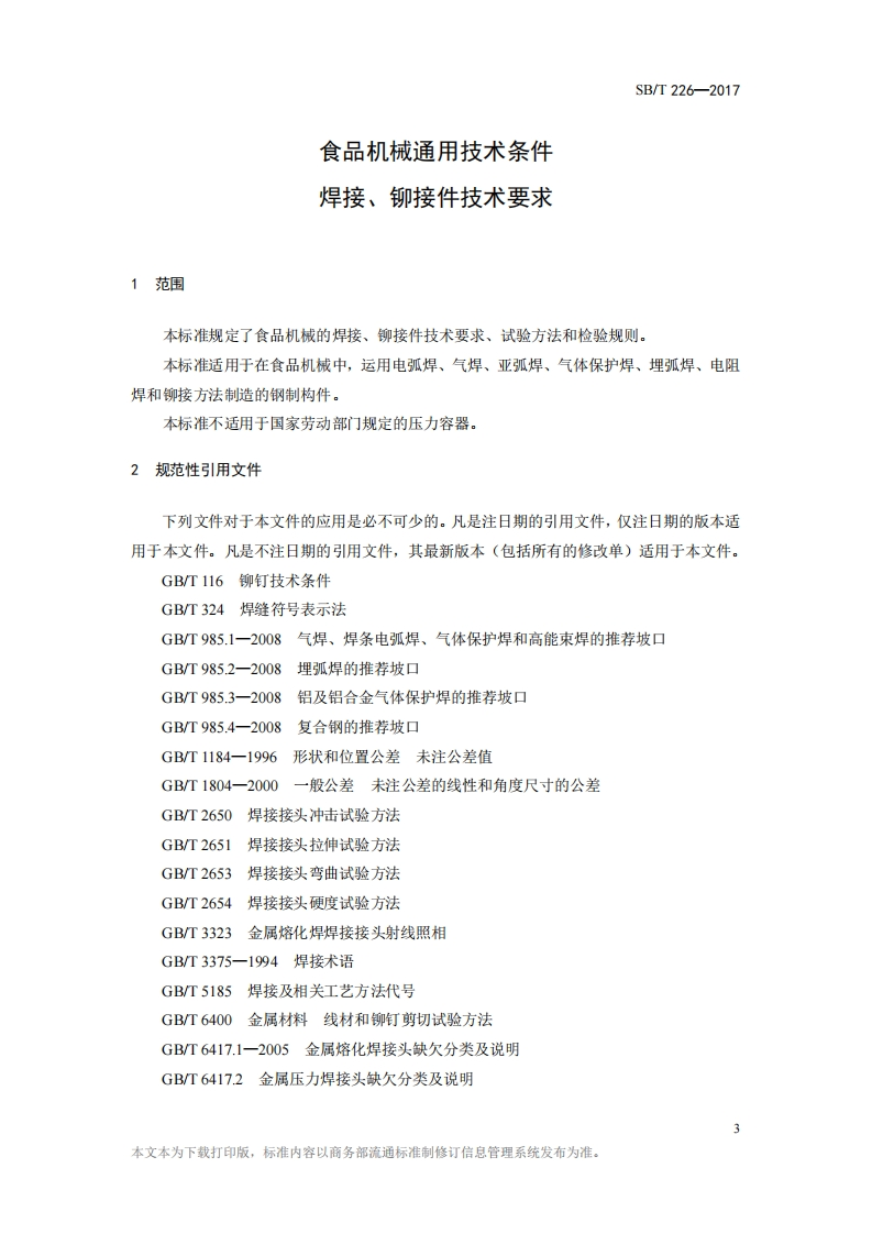 SB_T226-2017食品机械通用技术条件焊接、铆接技术标准要求348072@abc1个月前发布关注私信0.44MB15页044SB_T226-2017食品机械通用技术条件焊接、铆接技术标准要求此内容为付费资源,请付费后查看¥19¥23黄金会员免费钻石会员免费立即购买您当前未登录!建议登陆后购买,可保存购买订单付费资源 第1页 / 共15页 第2页 / 共15页 第3页 / 共15页 第4页 / 共15页 第5页 / 共15页 试读已结束,还剩10页,您可下载完整版后进行离线阅读 THE END播放器标准规范餐饮美食 喜欢就支持一下吧收藏
