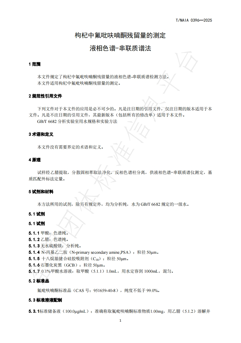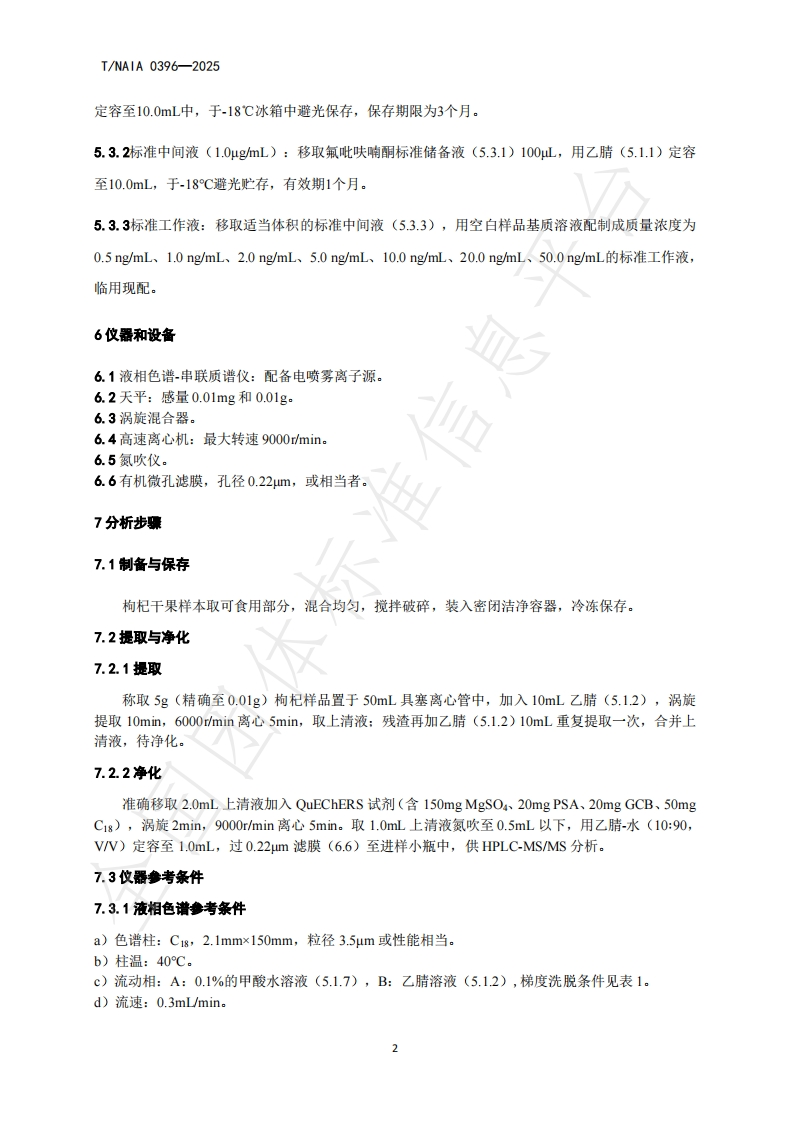 T_NAIA0396-2025枸杞中氟吡呋喃酮残留量的标准测定液相色谱-串联质谱法348072@abc1个月前发布关注私信0.67MB8页037T_NAIA0396-2025枸杞中氟吡呋喃酮残留量的标准测定液相色谱-串联质谱法此内容为付费资源,请付费后查看¥13¥19黄金会员免费钻石会员免费立即购买您当前未登录!建议登陆后购买,可保存购买订单付费资源 第1页 / 共8页 第2页 / 共8页 第3页 / 共8页 第4页 / 共8页 第5页 / 共8页 试读已结束,还剩3页,您可下载完整版后进行离线阅读 THE END农学类标准规范餐饮美食 喜欢就支持一下吧收藏